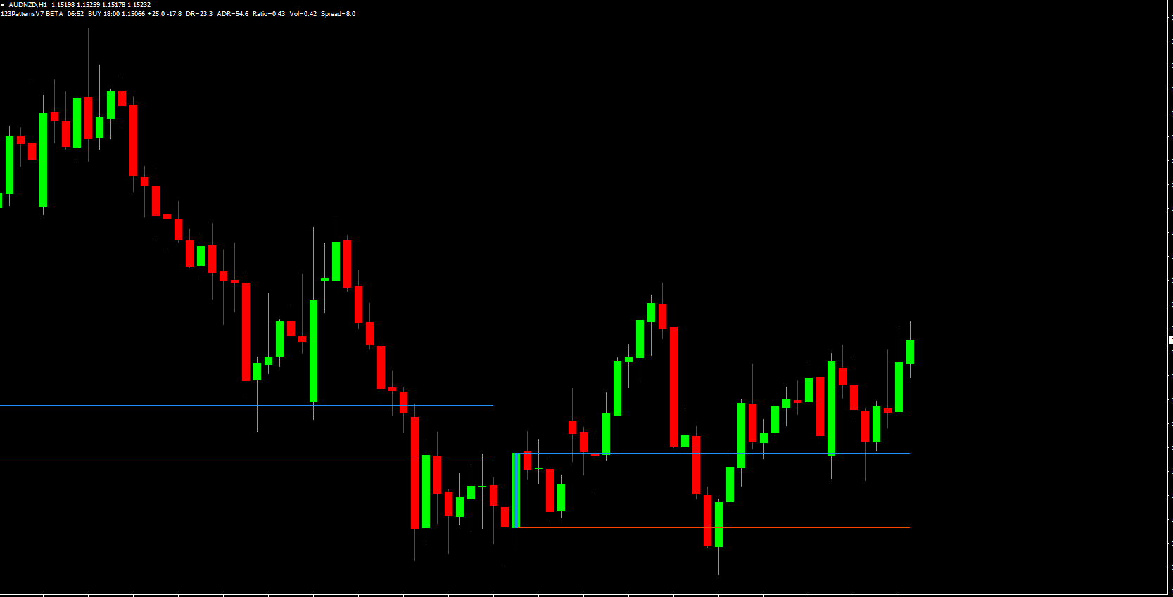 The 123 Forex Patterns indicator targets key price movements around market highs and lows, helping traders identify trend continuation or reversal setups.