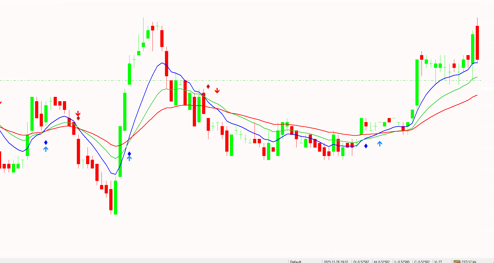 This indicator functions similarly to standard moving averages, but its advanced MTF capabilities and built-in signal system make it far more effective for strategy building. It provides clear BUY and SELL alerts using arrows and diamond markers, helping beginners and advanced traders make confident decisions.