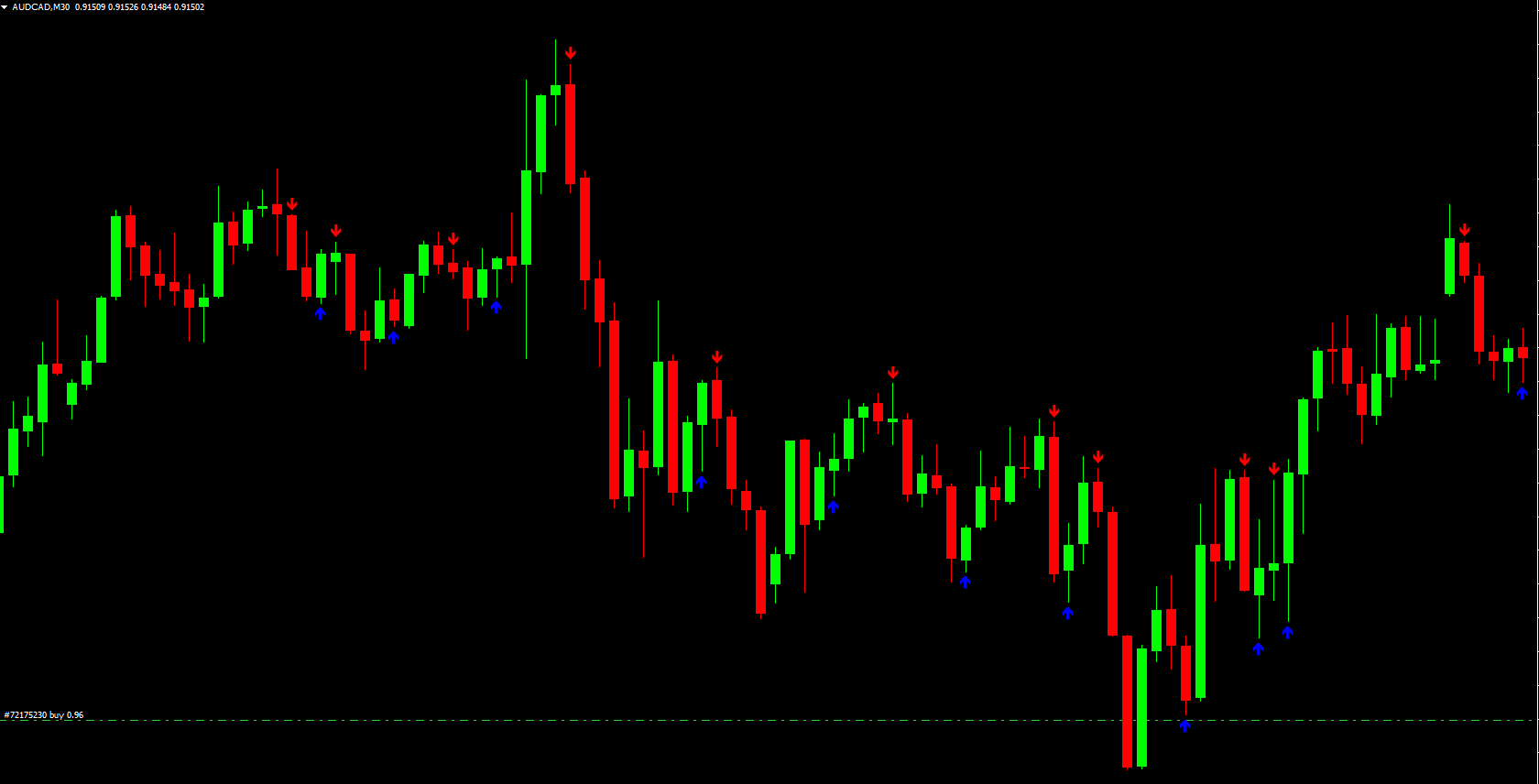 Take profit: at the appearance of a BLUE arrow or per trading plan
