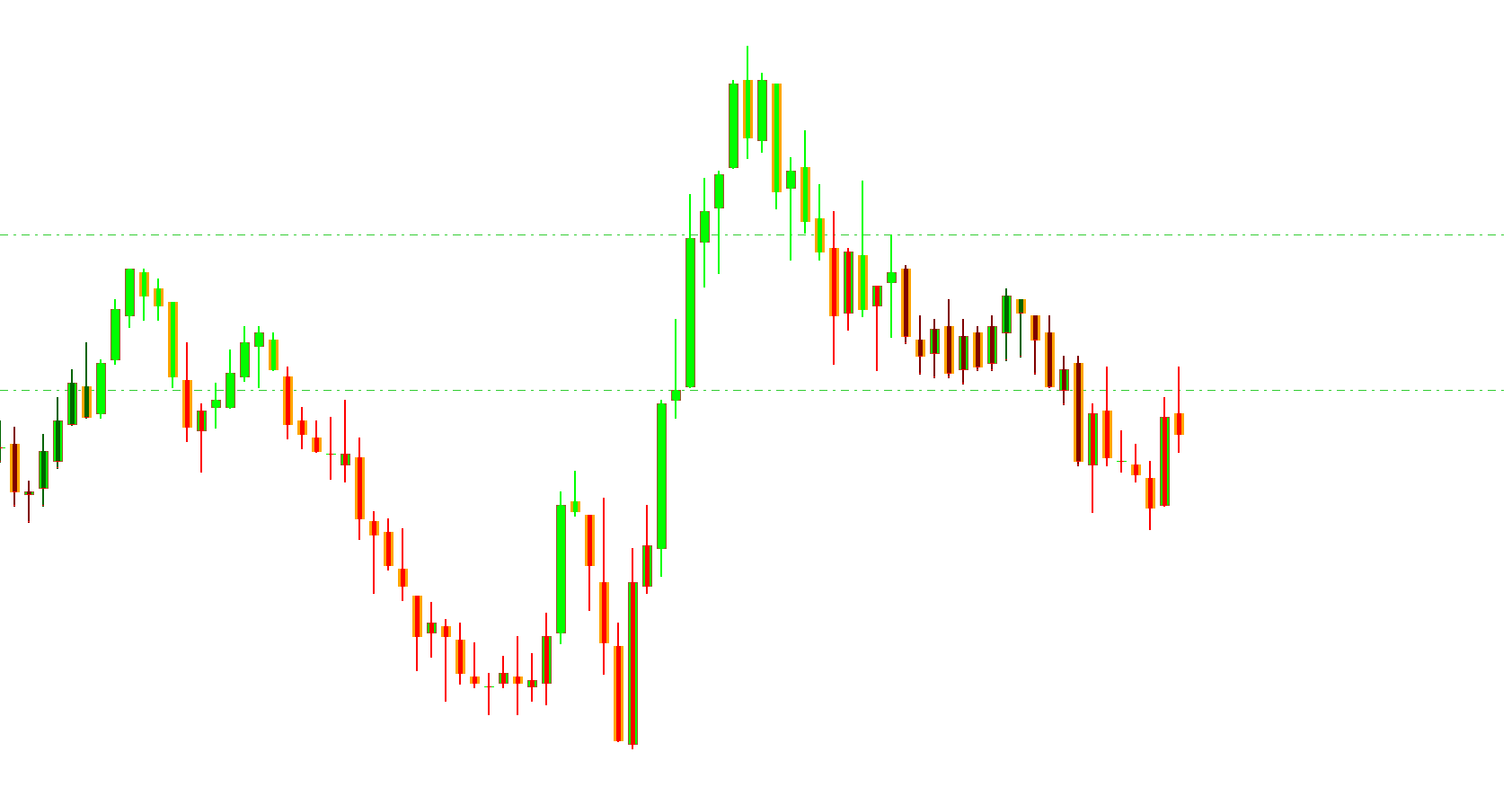 Green candles: Indicate strong bullish trends and potential buying opportunities.
