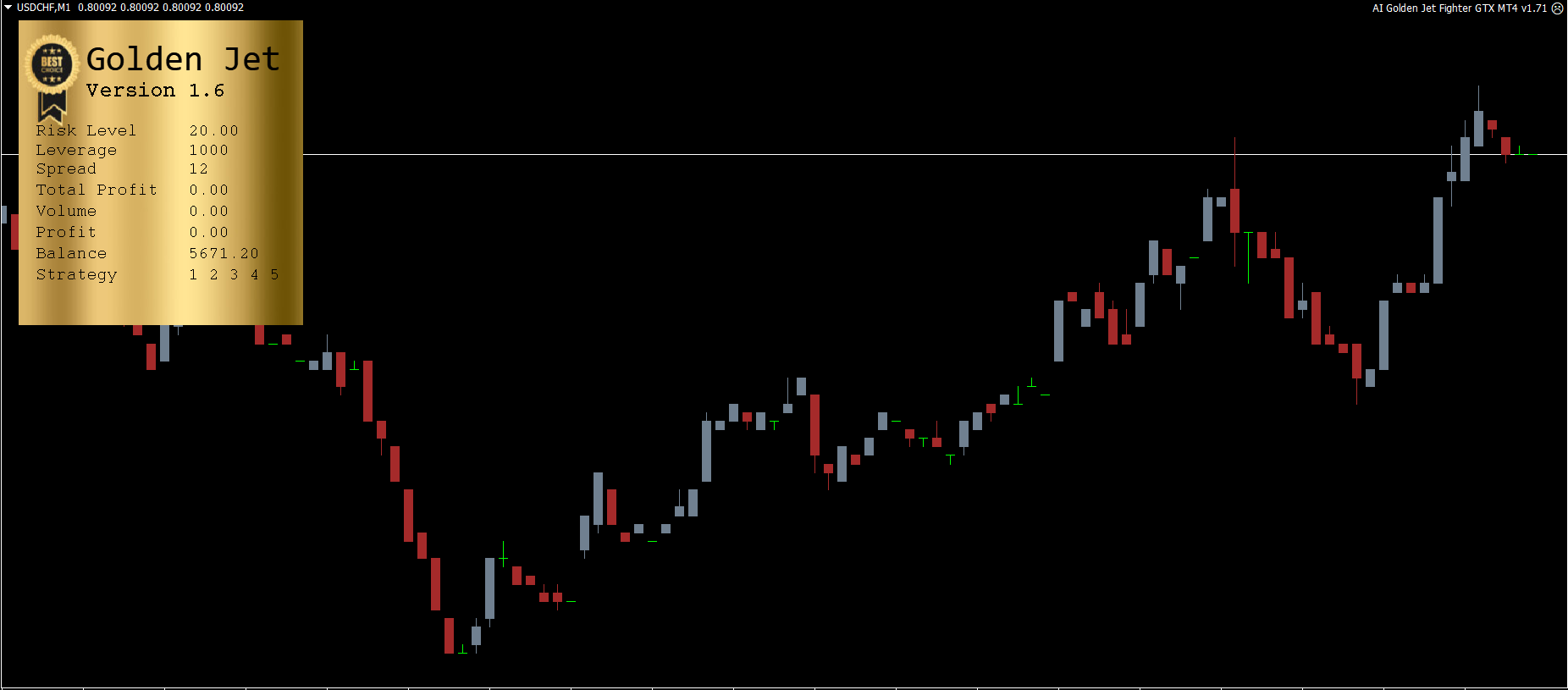 The AI Golden Jet Fighter GTX EA combines momentum-based and trend-following strategies, ensuring precise entries and exits: