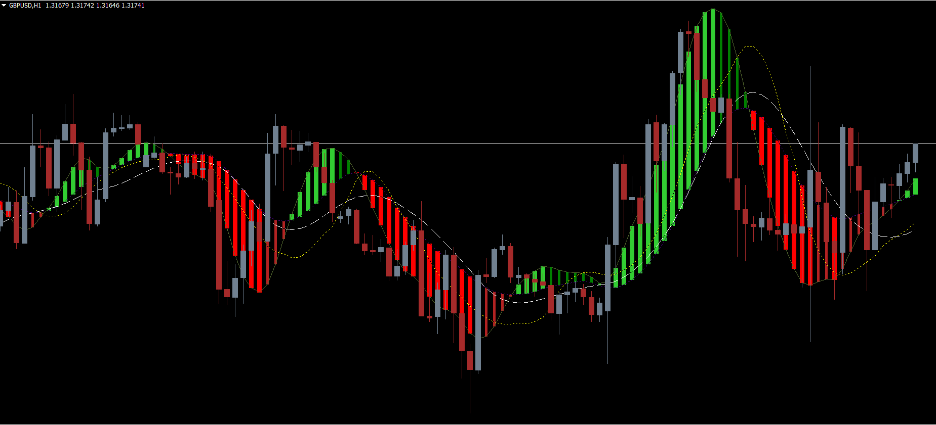 The Adaptive MACD cloud dynamically adjusts with price fluctuations. As the market momentum shifts, the indicator changes the MACD bar colors: