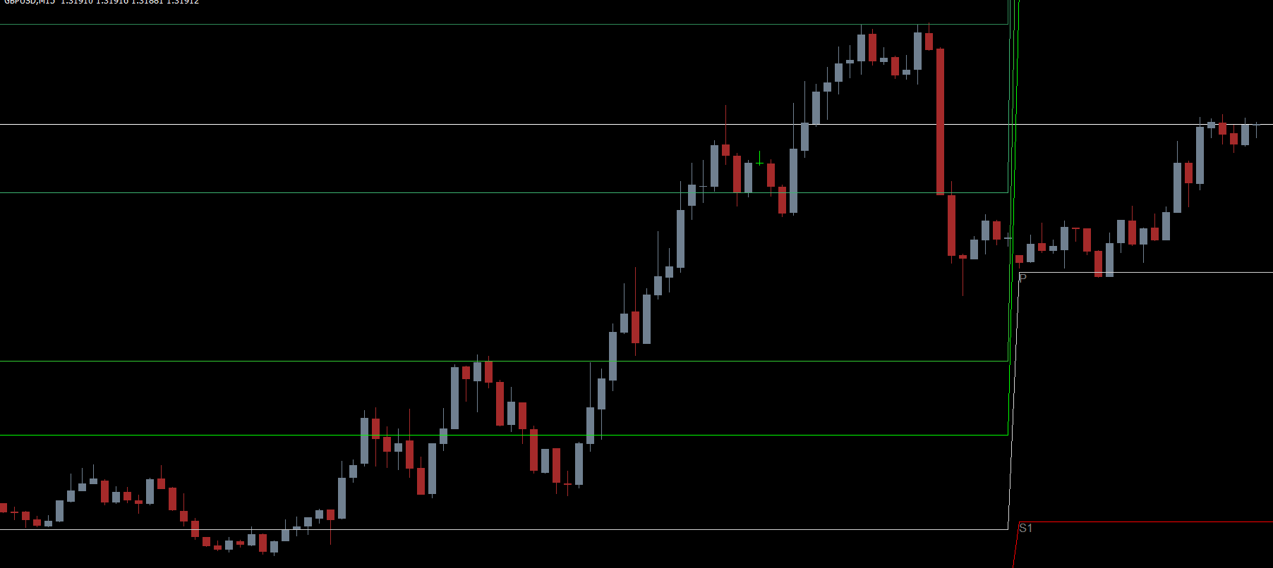 After installing the indicator in MT4, the six pivot levels are automatically displayed on the chart: