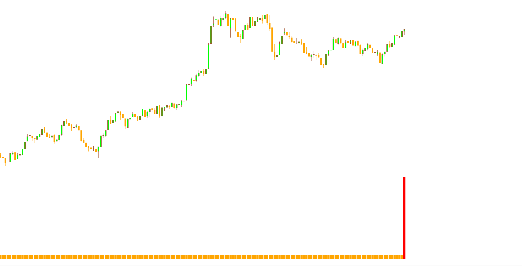 The Alpha Trend Spotter Indicator displays signals using colored histogram bars in a separate indicator window: