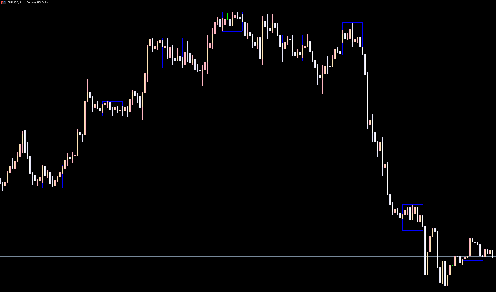 The Asian Range Indicator simplifies this by drawing colored rectangles around the consolidation area, enabling traders to instantly see when price breaks out of the box.