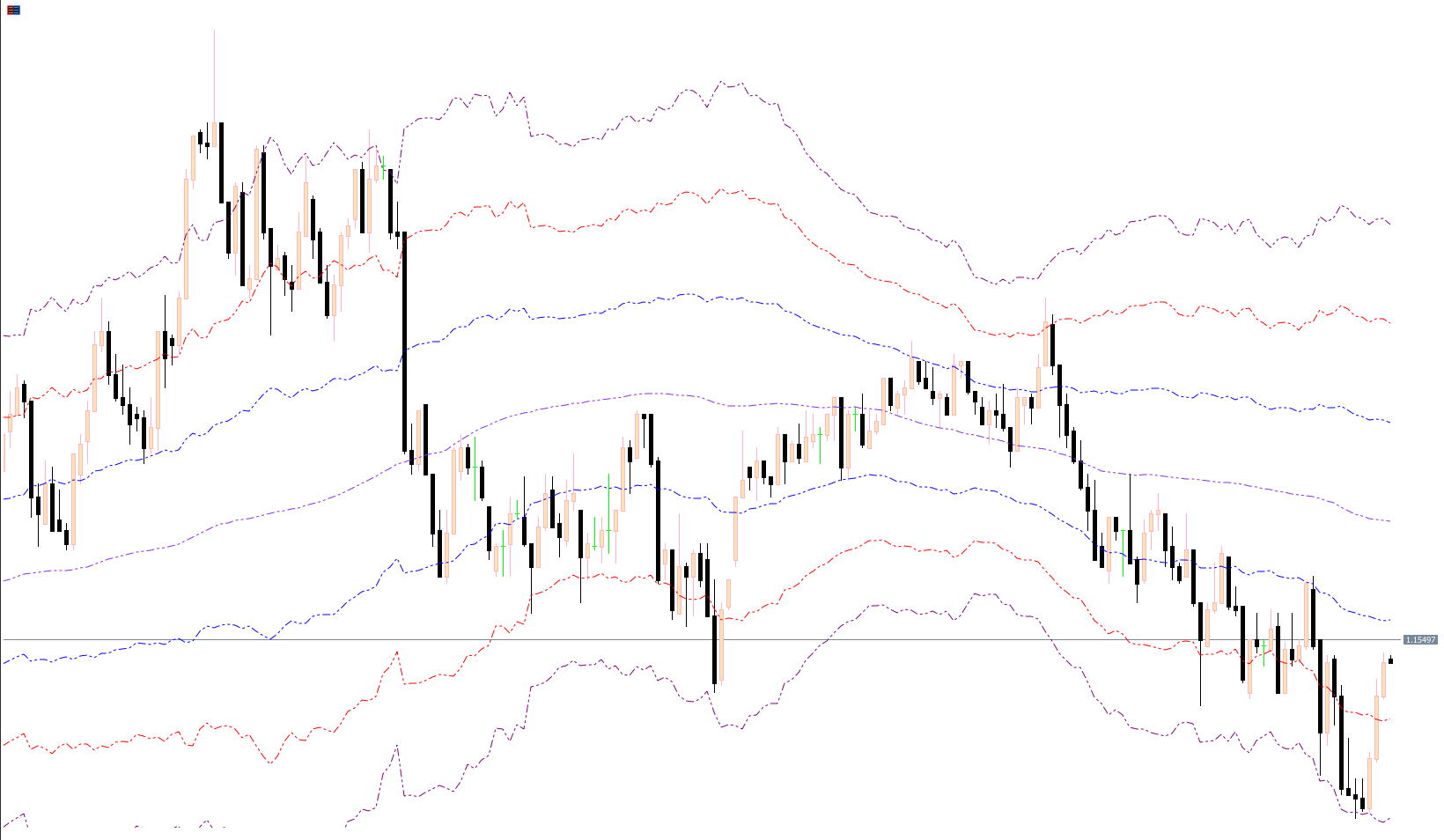 The ATR Channels indicator for MT4 is a trend channel tool that plots multiple dynamic channels around price using Average True Range (ATR) and moving averages. Unlike static channels, ATR Channels adapt to market volatility, helping traders identify support and resistance levels, trend directions, and potential breakout opportunities.