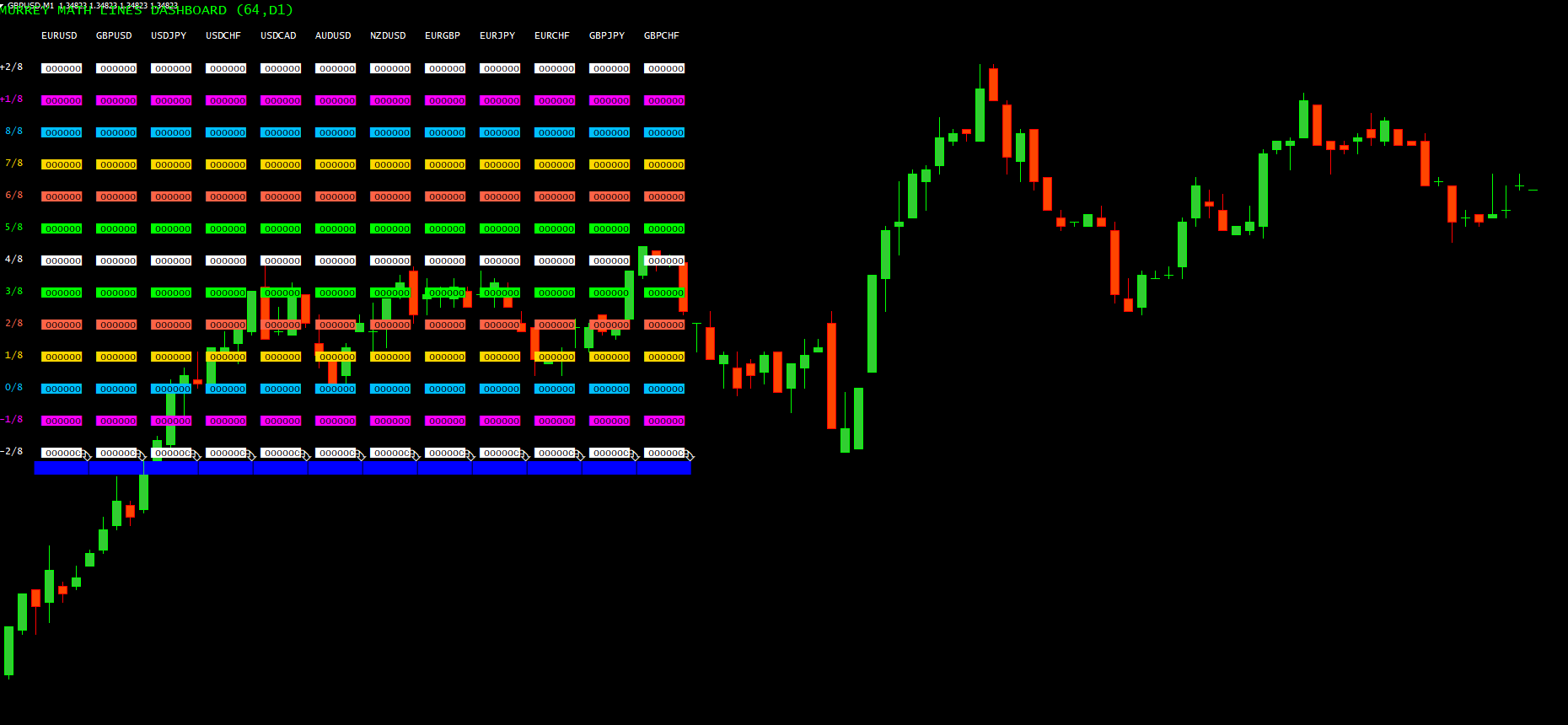 When the price approaches crucial MML levels like 8/8, 4/8, or -2/8, the dashboard visually alerts traders to possible trend reversals or breakouts. This helps both novice and experienced traders make data-driven decisions instead of relying on guesswork.