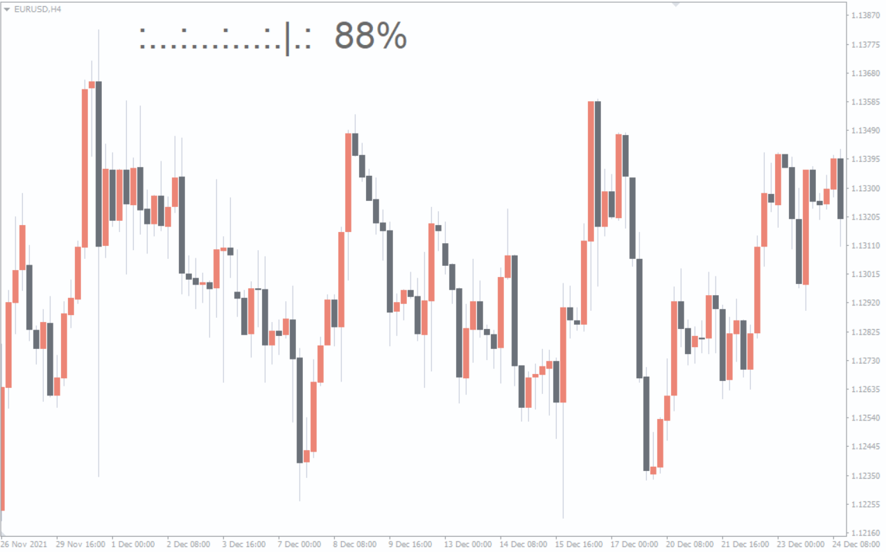 On your chart, the indicator appears typically in gray text showing the percentage or countdown of time left before the current candle closes. You can adjust: