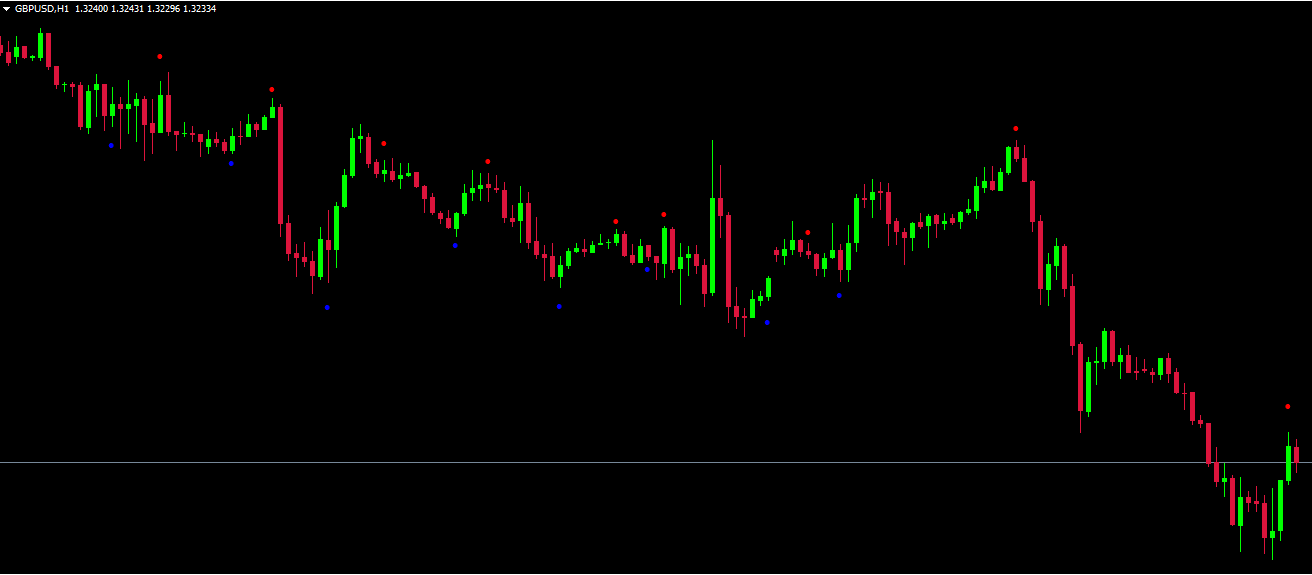 The blue and red dots drawn by the indicator serve as zones of interest. Traders should monitor these areas closely since they can act as turning points in the market. When the price nears a blue dot, it could signal a potential buying opportunity, while a red dot might indicate a potential selling opportunity.
