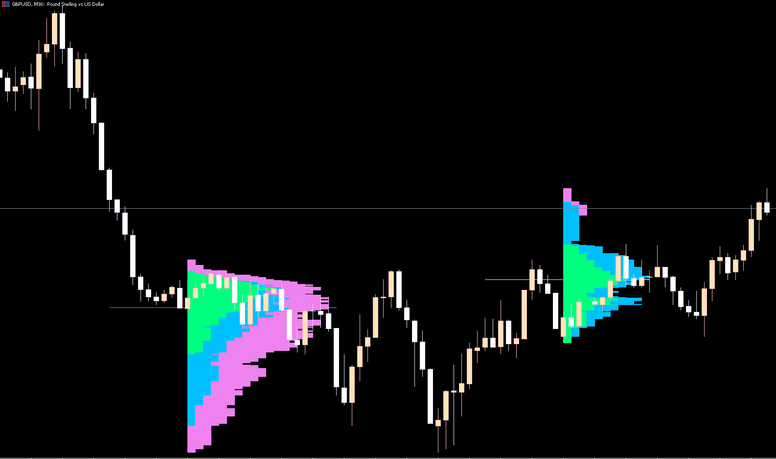 Unlike standard indicators, it generates a histogram based on tick-by-tick data, displaying zones where trading is most active. This histogram runs from right to left, allowing traders to focus on the current session without cluttering the chart.