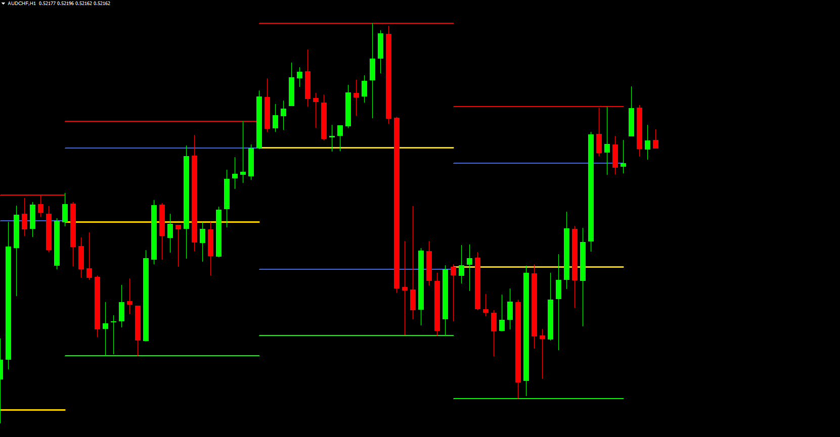 These four reference levels act as natural support-resistance zones. When the price breaks above or below them, it signals potential trend continuation or reversal opportunities.