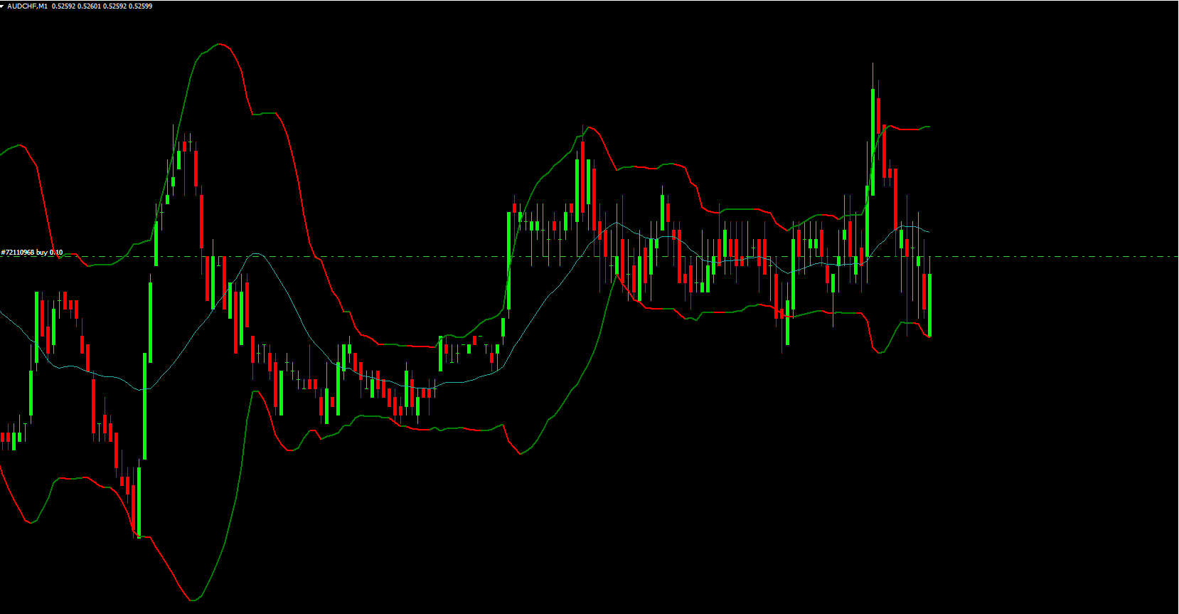 Bollinger Bands are built using standard deviation, allowing them to expand and contract based on changing volatility. The bicolor version enhances this classic indicator by adding alternating green and red outer bands, providing instant visual cues about market sentiment. Along with a light-sea-green moving average at the center, the indicator displays three key components on your MT4 chart: