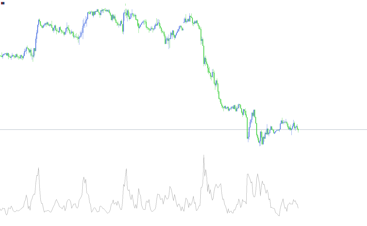 The indicator oscillates between +50 and -50, showing: