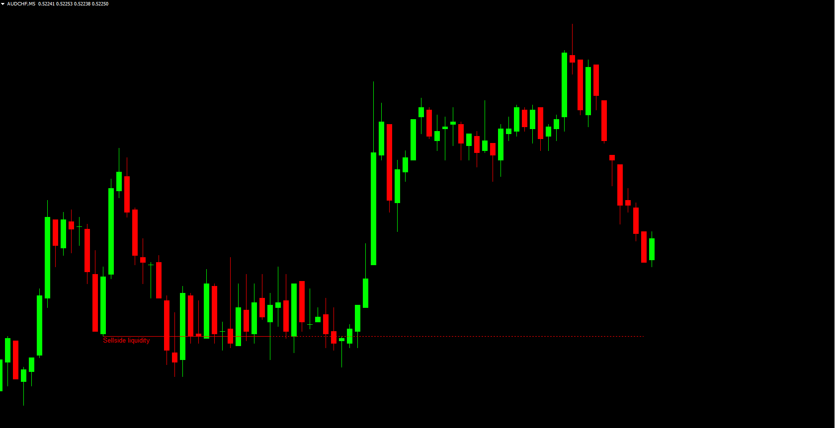 Sellside Liquidity: Typically found below recent lows, highlighting zones where buy stop orders or trapped positions may cluster.