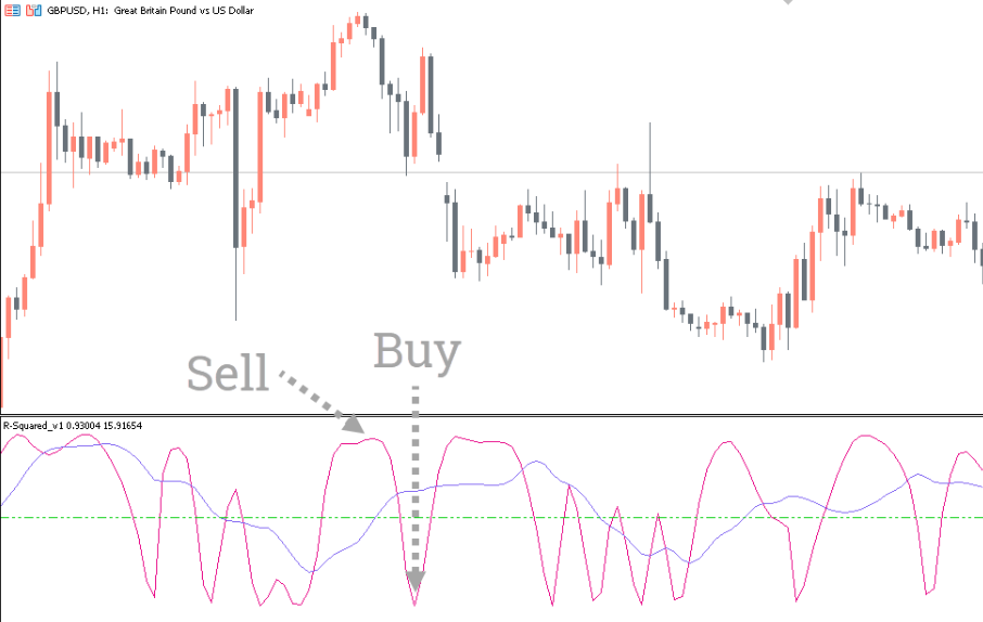 On the GBP/USD H1 chart, the indicator draws both a zero line and a dark blue oscillator line. When the oscillator crosses above zero after a bullish divergence, a buy signal is generated. Conversely, when it drops below zero following a bearish divergence, a sell signal is confirmed.