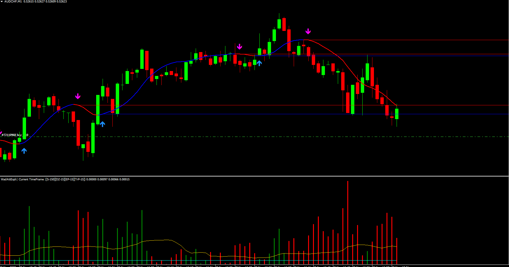 The HMA Arrows Indicator operates with a dynamic line that follows market trends. It changes color depending on the trend: dodger blue for an uptrend and magenta for a downtrend. Alongside the trend line, it plots support and resistance zones, which traders can use as potential exit points or areas of market interest.