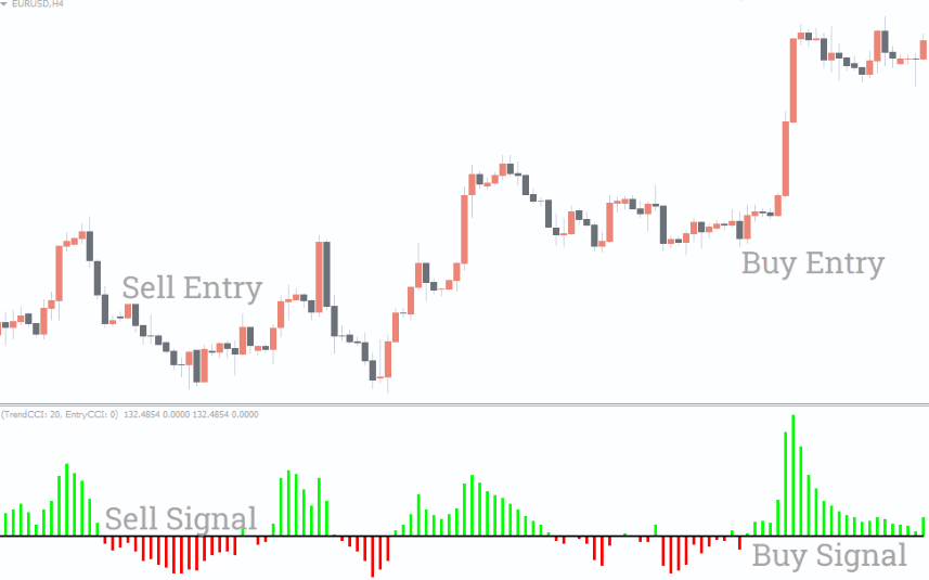 Positive Zone: When the CCI crosses above the moving average, the histogram value becomes positive. This indicates strengthening bullish momentum and the potential start of an upward trend.