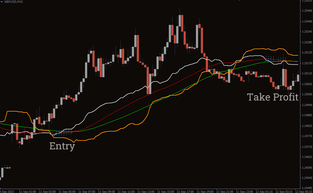 When the Taichi line crosses above the TaichiFor line, this indicates a bullish signal — the market may start trending upward. To confirm your entry, combine this with other tools like support/resistance levels or momentum oscillators for higher accuracy.