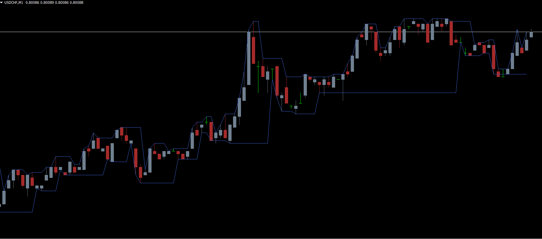 The indicator paints boxes around price movements, showing consolidation phases and potential breakout areas. When price breaks out of a box — either upward or downward — it signals the start of a new move.