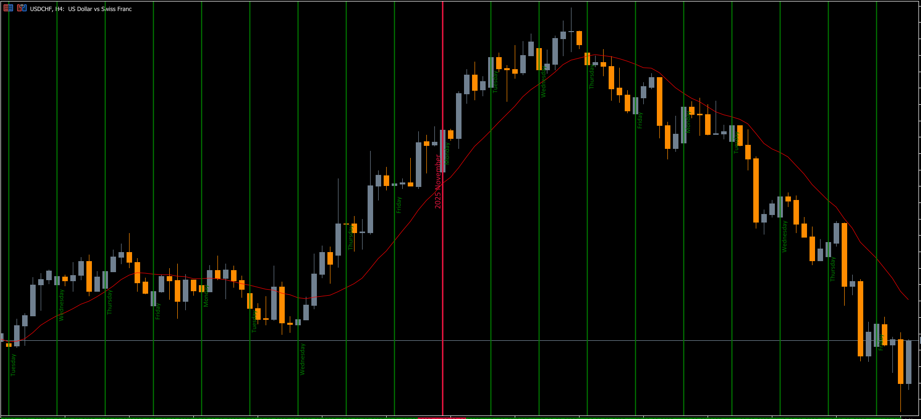 The Day of the Week Labels Indicator MT5 is a customizable tool that plots vertical lines to mark the beginning of each trading day. It also labels each day with its name—Monday, Tuesday, Wednesday, Thursday, and Friday—making it easier to identify market behavior across the week.
