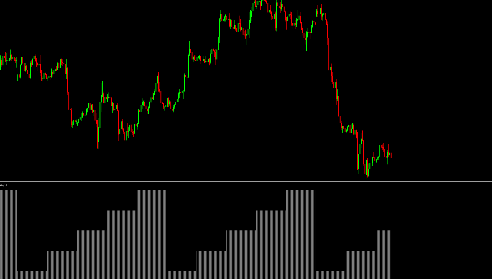 Each day of the week is displayed using simple, color-coded bars. These bars vary slightly in size, allowing traders to distinguish between days quickly and intuitively. The minimalist design prevents distractions and enhances focus on market trends.
