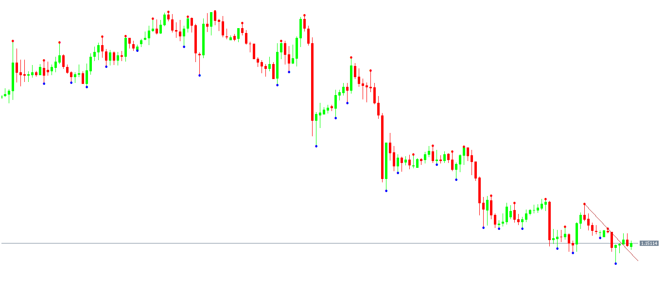 If EUR/USD is in an uptrend, and price breaks below the blue uptrend line, the indicator will issue a sell alert. This suggests a potential bearish reversal.