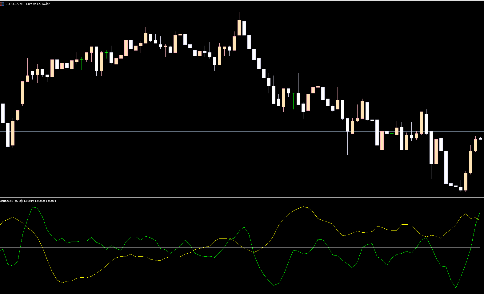 Yellow Line: Works alongside the green line to generate buy/sell signals when the two lines cross.
