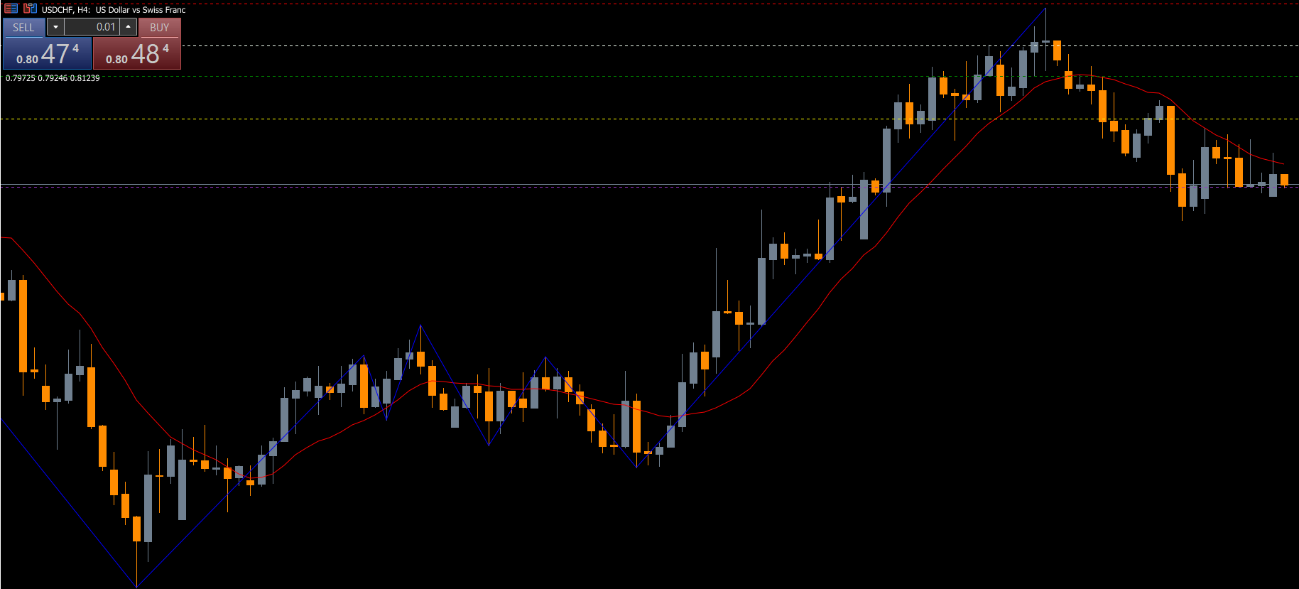 Watch for the price approaching the white dotted line, which acts as a potential buy or sell entry zone.