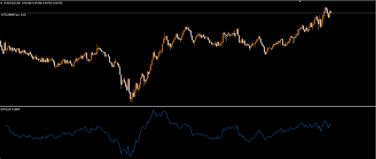 When the DPO dips below zero (oversold), traders look for buy opportunities or close existing short trades.