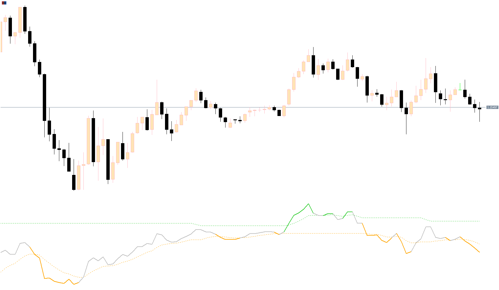 The DSL-DMI is a visual oscillator that helps traders identify market phases using three distinct colors: