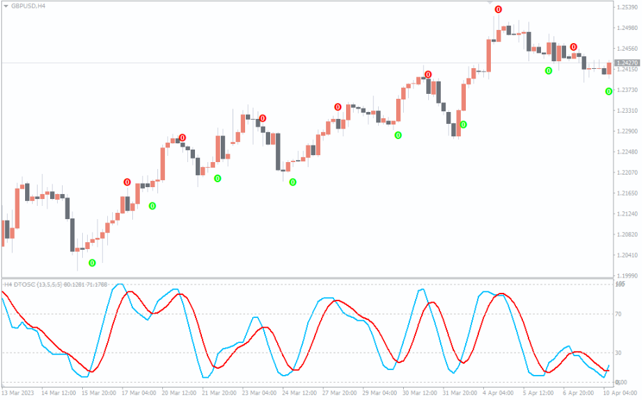 While the DTOSC functions on all chart periods, it produces the most reliable signals on higher timeframes, such as: