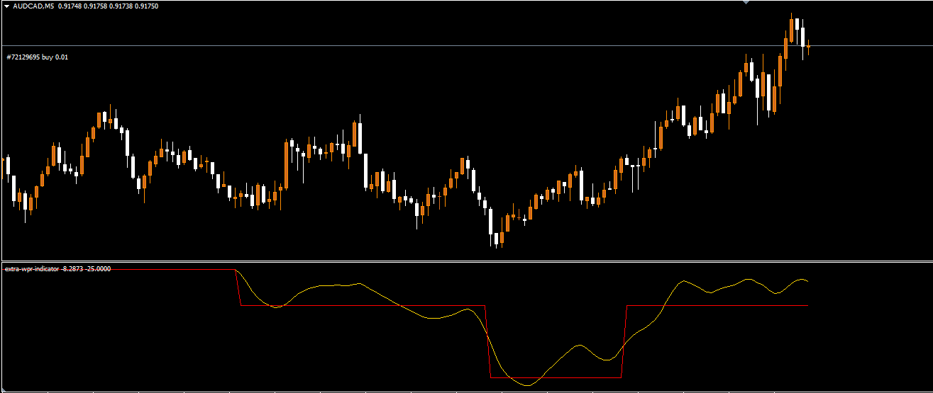 The Extra WPR Indicator operates on the same logic as the Williams %R oscillator — measuring price momentum relative to recent highs and lows — but applies smoothing techniques to reduce noise and false signals.