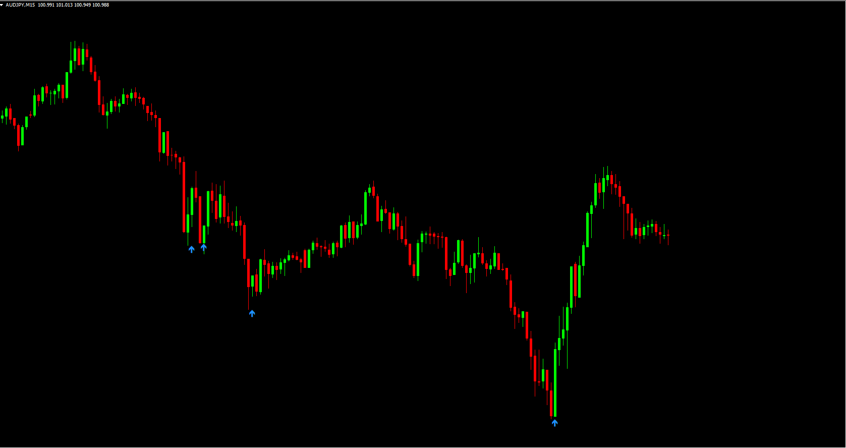 Traders may enter a BUY position when the arrow aligns with price action (e.g., bullish engulfing, break of structure).