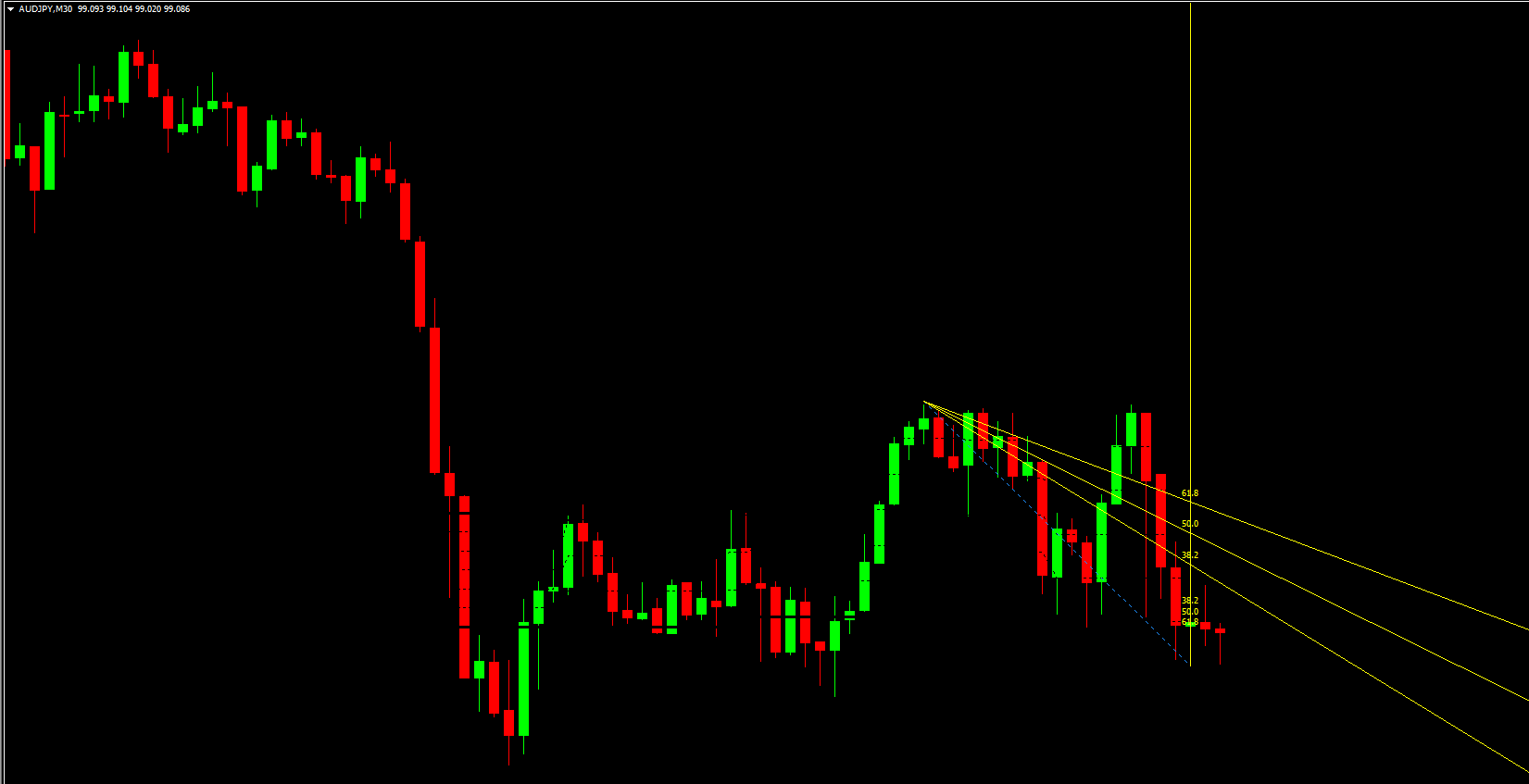 Conversely, when the price reaches an upper fan level and begins to fall, it signals a potential selling opportunity.