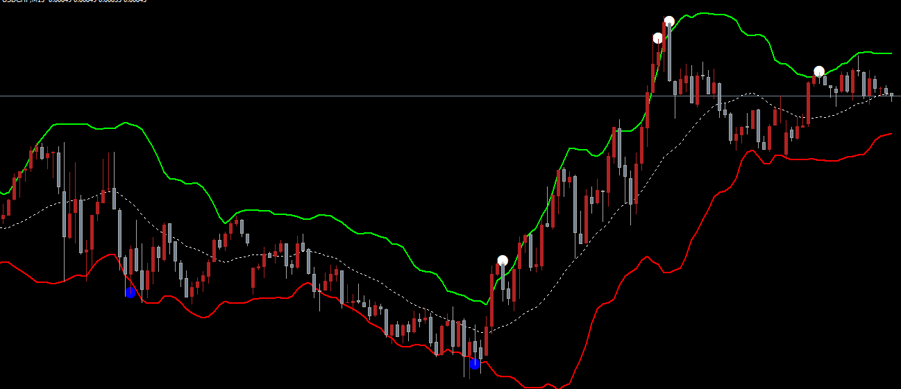 Unlike standard Bollinger Bands, the Fiji BB Alert adds visual dot signals to indicate trend shifts. A black dot signals the start of a downtrend, while a blue dot highlights the beginning of an uptrend. These signals make it easier for traders to anticipate price movements and reduce guesswork.