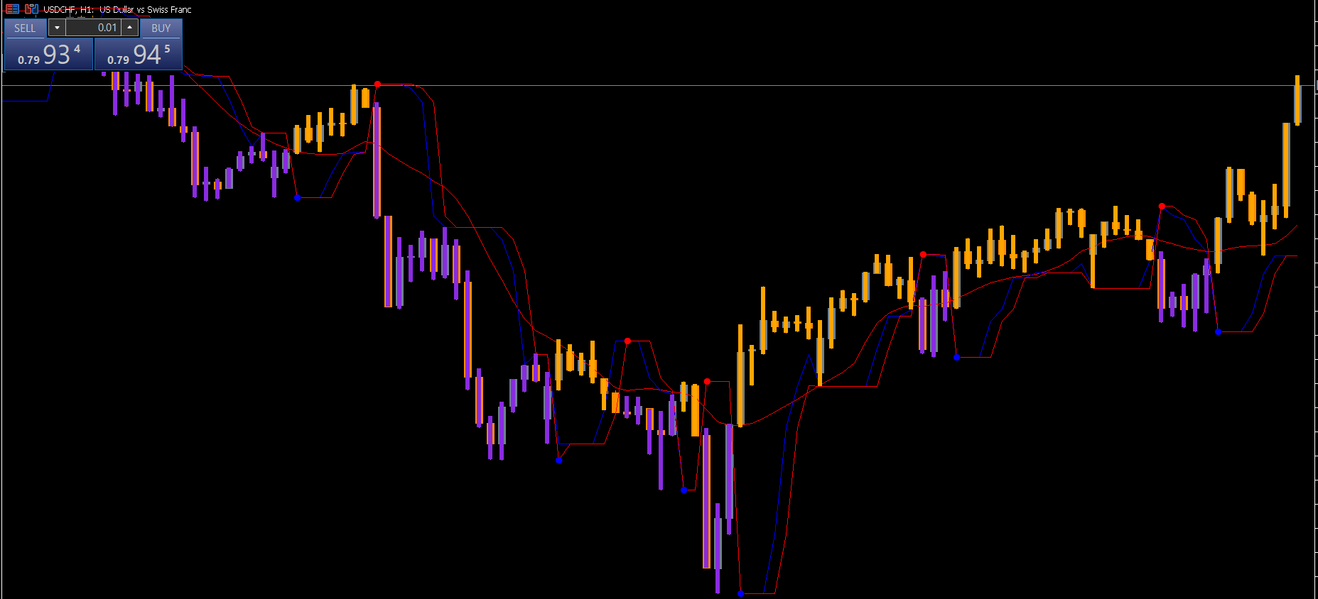 The indicator performs best when combined with price action patterns, making its trend readings more reliable. The chart typically shows colored lines and dots, giving you clear entry confirmation.