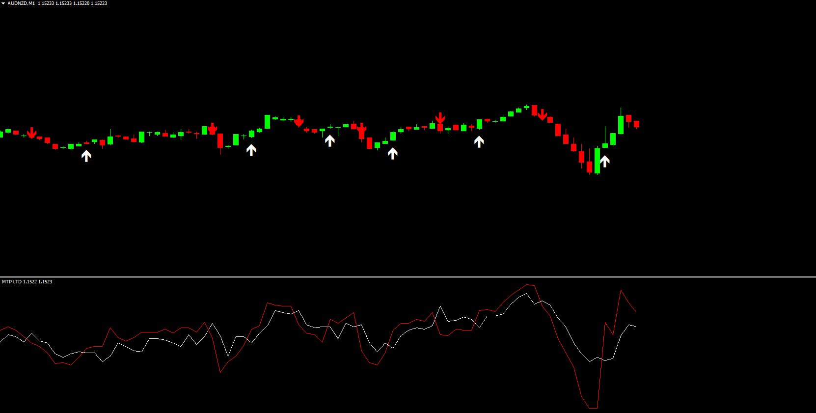 The indicator plots arrows directly on the MT4 chart to indicate trading opportunities: