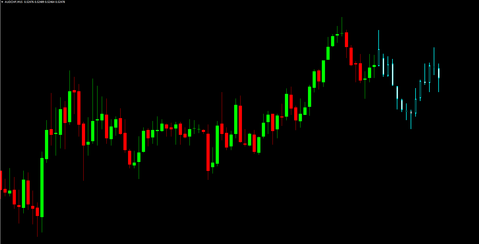 The indicator analyzes historical price action and candlestick patterns to forecast the next candlestick on the chart. Key features include: