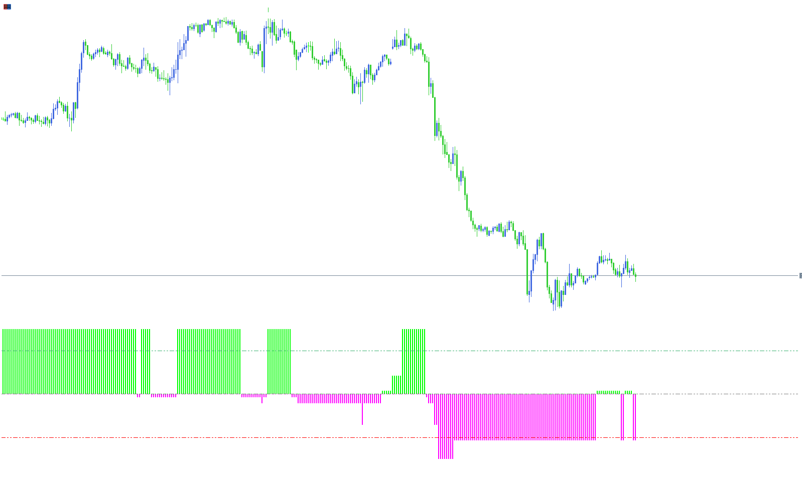 This indicator uses a color-coded histogram to display market strength, making it easy for both beginner and professional traders to interpret. The indicator is compatible with all timeframes and suits scalping, intraday, and long-term trading strategies.