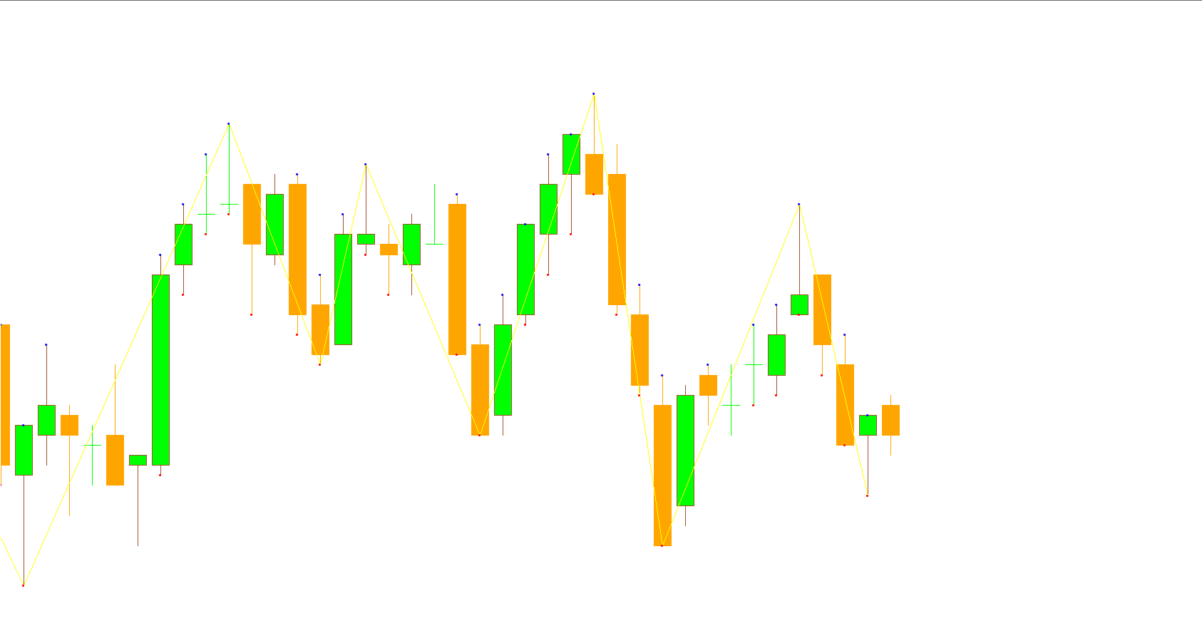 Pink Dots: Represent bearish signals. When price makes lower lows and lower highs, the presence of pink dots indicates a potential sell opportunity. A stop loss can be set above the previous swing high.