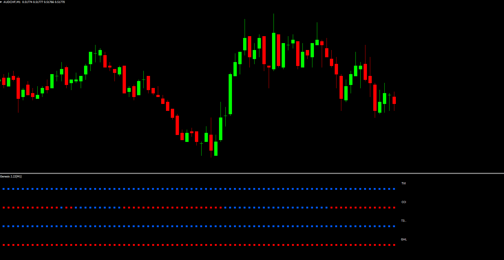 Consider a chart of AUD/NZD. During consolidation, the Genesis Matrix 2.22 rows may alternate colors. Once all modules shift from red to blue, the indicator confirms a strong bullish trend. Traders who enter here often capture large movements before exiting at the next color flip.