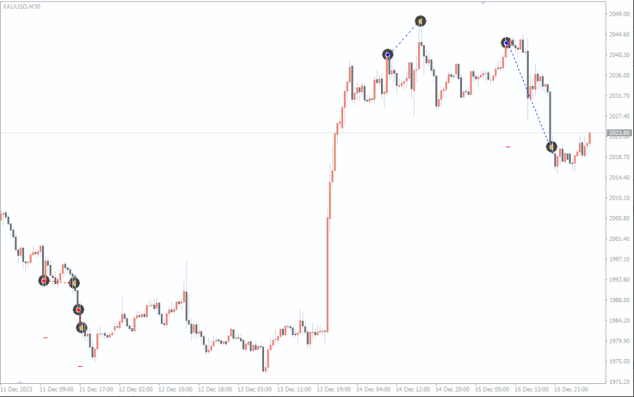 This intelligent signal logic is visually represented on the chart, allowing traders to see how each decision aligns with market conditions.