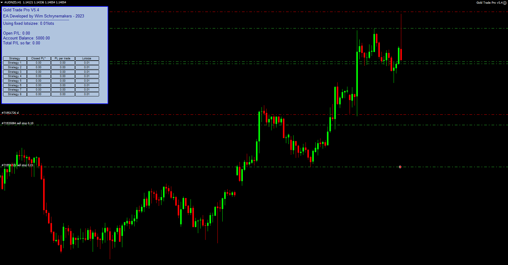 Gold Trade Pro EA V5.4 is a professional automated trading system for MetaTrader 4 (MT4), purpose-built for trading gold (XAUUSD). Developed by Wim Schrynemakers, this expert advisor (EA) integrates eight independent trading strategies that operate simultaneously, allowing traders to balance profit opportunities with controlled risk.