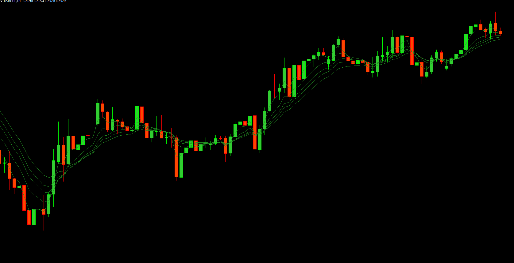 By combining multiple EMAs, this indicator provides visual cues about the current market momentum, allowing both new and experienced traders to make informed decisions.