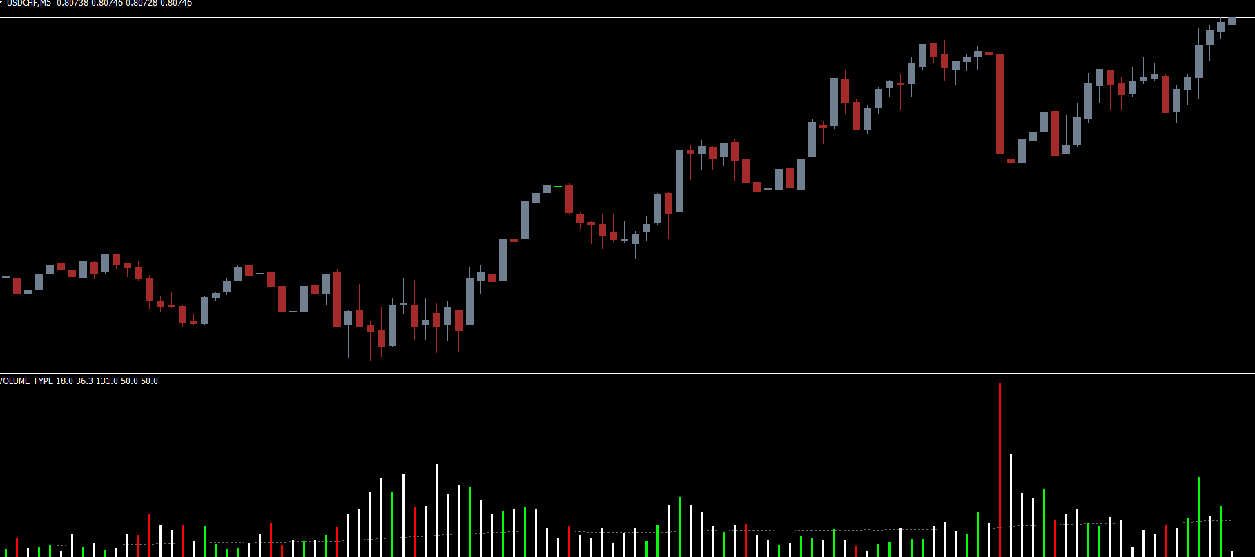 The standard MT4 volume indicator displays tick volume supplied by your broker. Each bar represents the number of price changes within that candle. Although it does not show true exchange-based volume, it remains a powerful tool for assessing trader participation, price strength, and potential reversals.