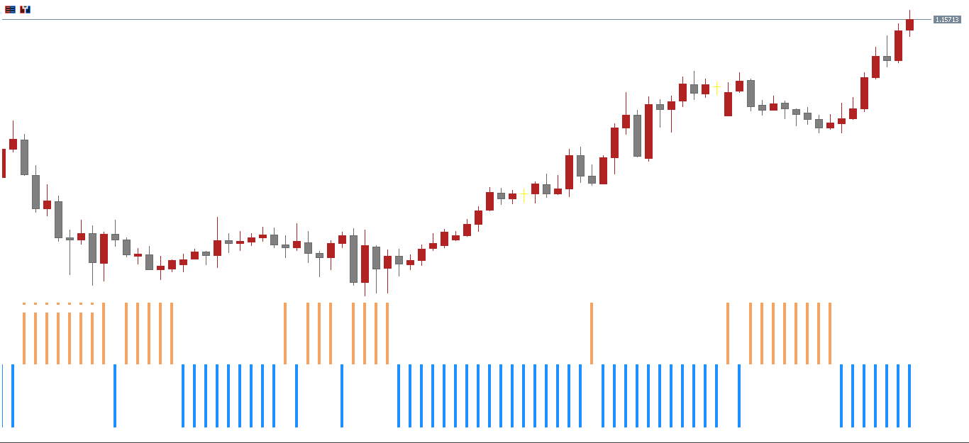 However, a blue bar does not guarantee that prices will immediately rise, nor do red/orange bars promise a sudden drop. Always wait for price confirmation before entering trades.