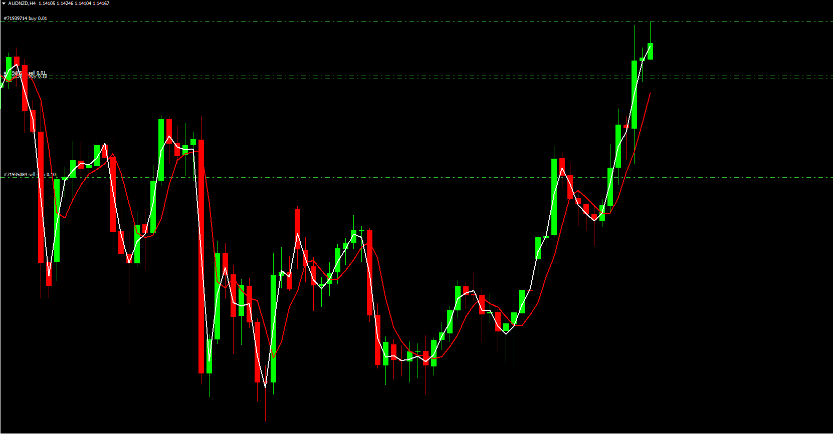 When the white line crosses above the red line, it signals a bullish trend β a potential opportunity for a buy trade. Conversely, when the white line crosses below, it signals bearish momentum β a potential sell opportunity.