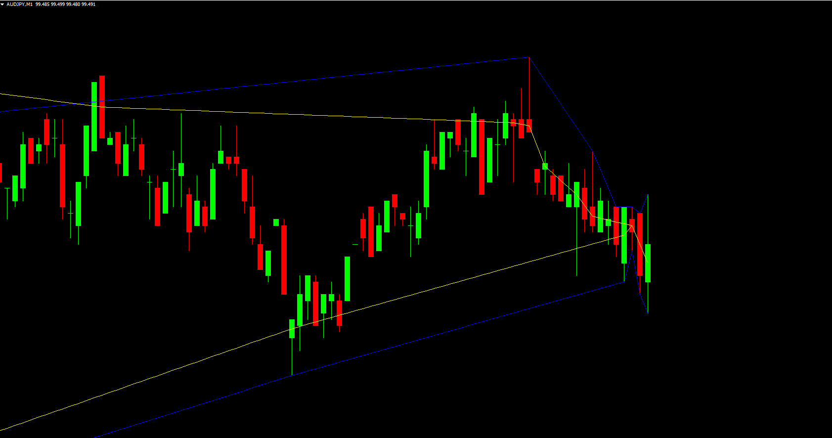 The two colored bands (black and blue) move along with the price, forming upper and lower envelopes around it. These represent the highest highs and lowest lows within a specific period.
