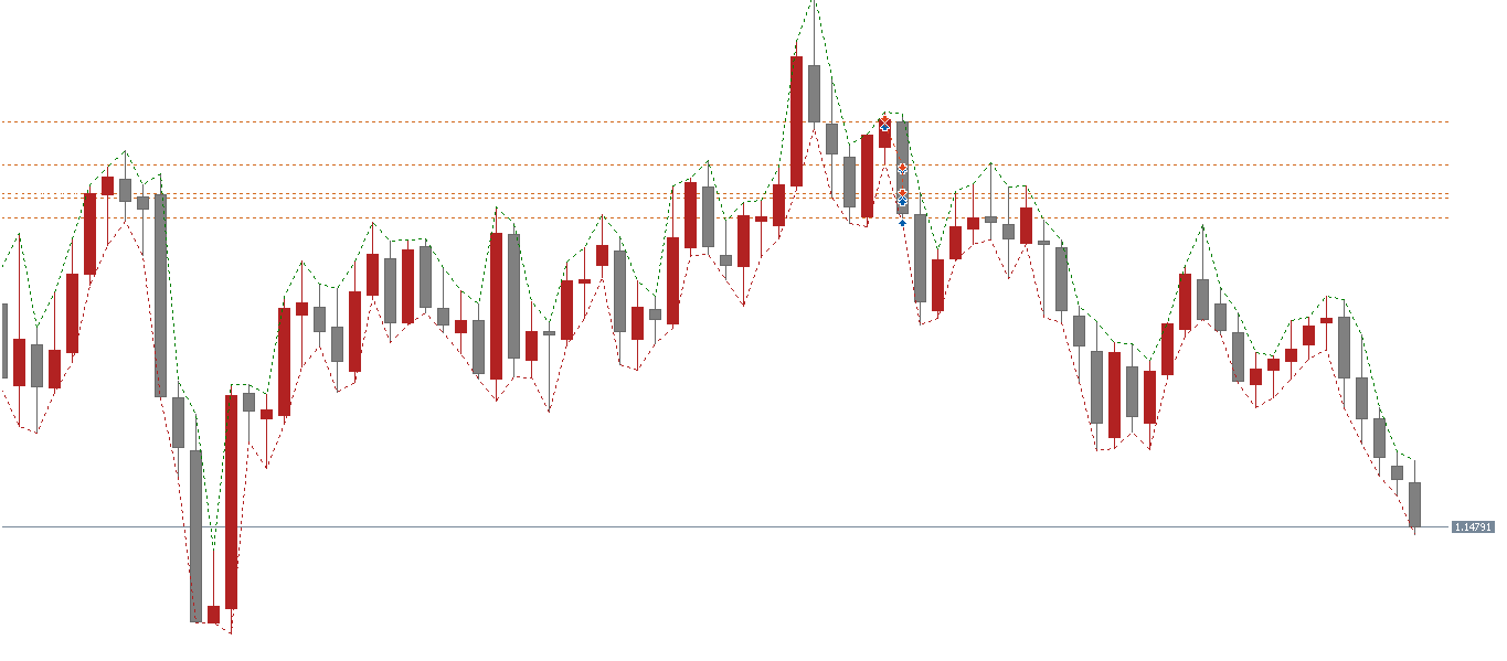 The High Lows Indicator automatically extracts and plots the highest and lowest price levels from each trading day. As new daily candles form, the indicator updates the lines, connecting each day’s highs and lows in real time.