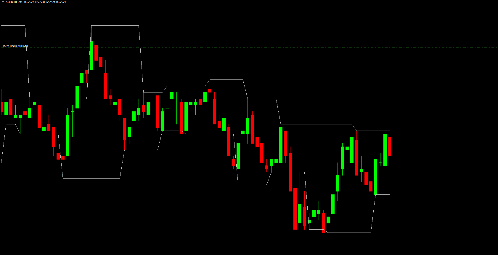 In a practical example using the EUR/USD H4 chart, the Ifractal Channel Indicator draws a channel that neatly encloses the price movement: